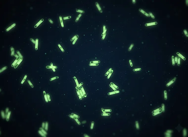 Fluorescence microscopy image of bacteria which have been genetically engineered to produce the green fluorescent protein. The amount of protein produced by each bacterium is under the control of a genetic circuit. Mathematical analysis of naturally occurring circuits as well as the engineering of artificial gene circuits is a rapidly expanding area of research at the interface of physics and biology.